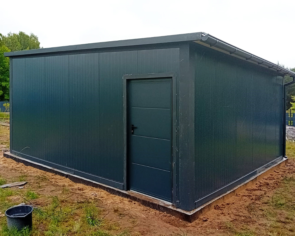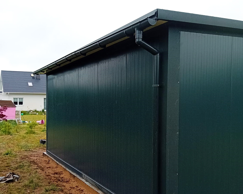 Garaż z płyty warstwowej – GRAFITOWY – wymiar: 6×5,8 m + brama segmentowa